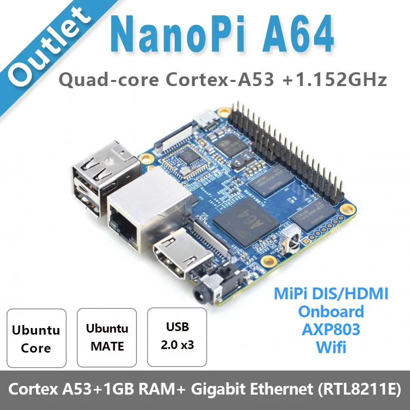 NanoPi A64 Allwinner A6464 Bit High-performanceQuad-Core A53 Demo Board Running UbuntuCore & Ubuntu